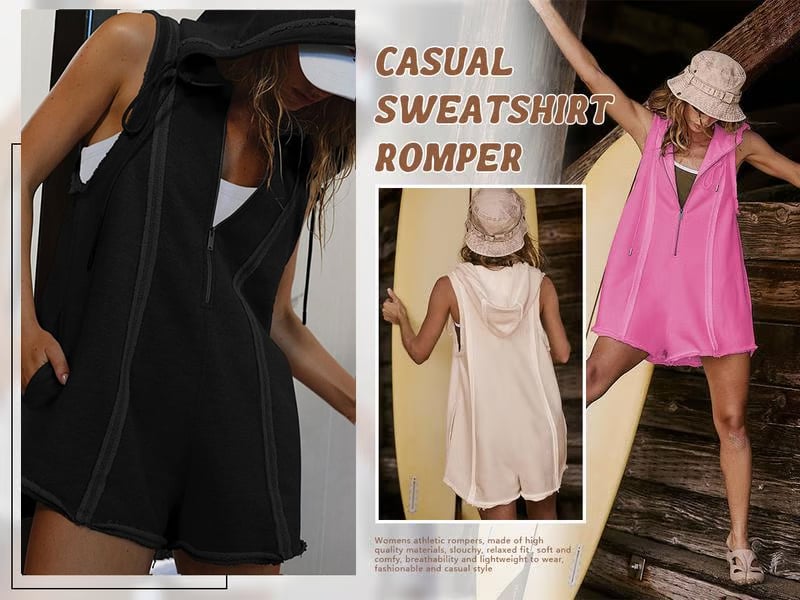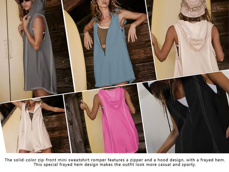 ⏰LAST DAY - HALF PRICE💥Short Half Zipper Sports jumpsuit for Fitness Outdoor Leisure Sleeveless Loose Hoodie for Women